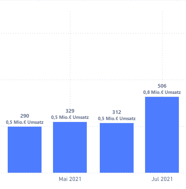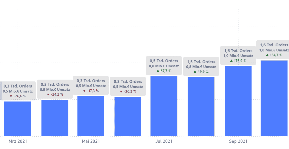- Nutze die erweiterten Datenbeschriftungen, um bis zu drei Kennzahlen direkt an einem Datenpunkt anzuzeigen (z. B. Aufträge, Umsatz & Abweichung).