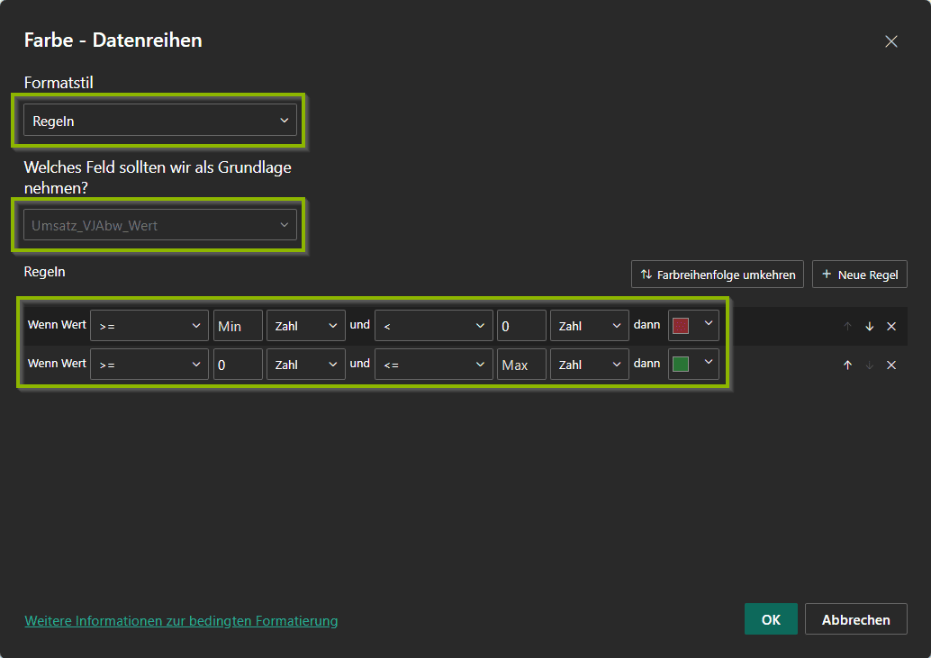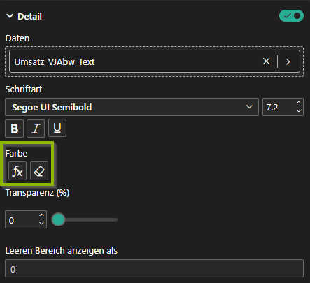 - Verwende bedingte Formatierungen für die Farbe deiner Datenbeschriftungen (z. B. Rot bei negativer Veränderung, Grün bei positiver).