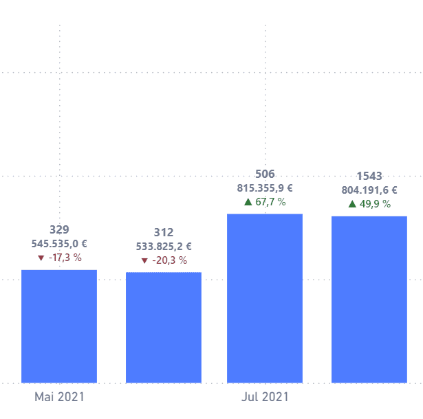- Prozentuale Umsatz-Veränderung zum Vorjahr (z.B. ▼ ‑10,9 %)