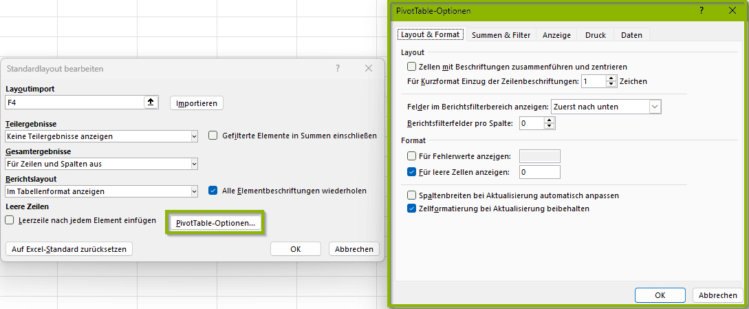 - PivotTable-Optionen
